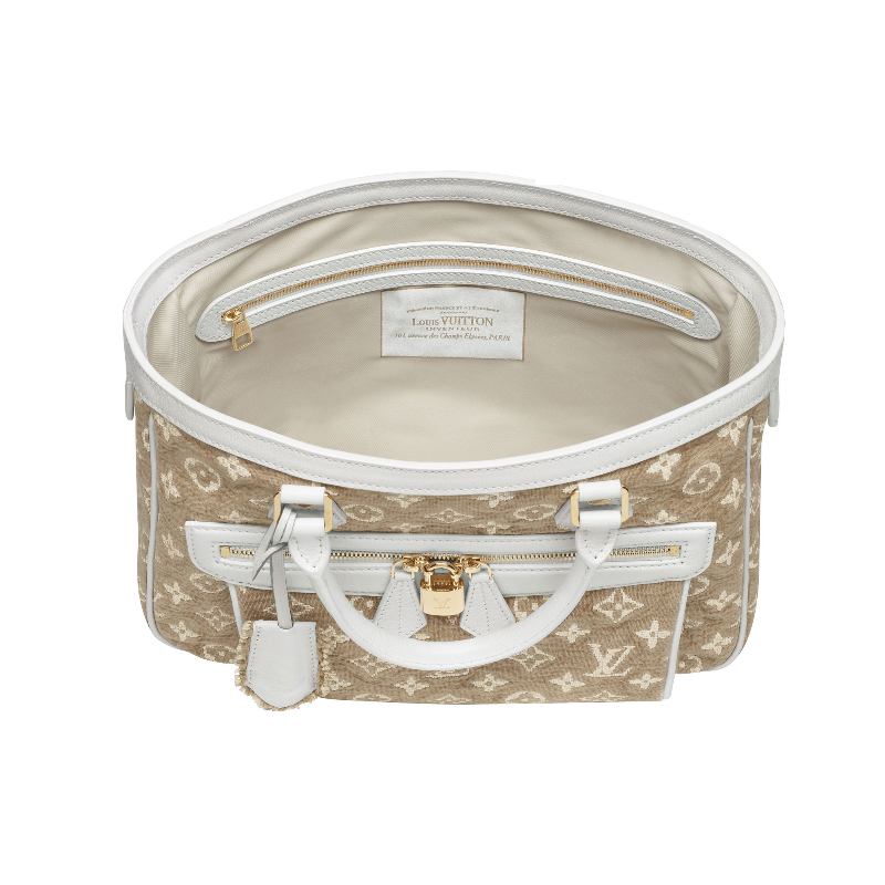 Capture retro chic with the Cabas MM. The cotton jacquard Monogram Sabbia fabric gives the iconic Monogram pattern a vintage charm, while bold contrasting leather trimmings and floral details add a playful edge.