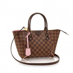Caissa, this new tote in Damier Ebene, is named in homage to the goddess of chess as a subtle wink to the Damier pattern. The bag displays a sophisticated silhouette of strong, modern lines softened by delicate curves. Contrast-edge dyeing and leather accents in bold colors lend a colorful touch. Heritage details include an embossed leather patch inspired by classic Vuitton trunk drawers, hand-stitching and refined gold-tone hardware. The Caissa Tote PM comes with a removable strap.
