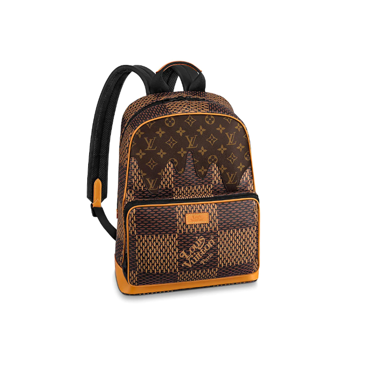 Fashioned from Giant Damier Ebene coated canvas with natural leather trim and black hardware, this Campus Backpack is part of the Nigo capsule collection. The result of a collaboration between Virgil Abloh and Japanese streetwear icon Nigo, the bag features Nigo鈥檚 emblematic drippy wave motif on the front pocket in Monogram