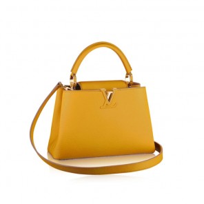 The fashionable mini size of Capucines BB lends an intense pop of contrasting colors to wardrobe styles from classic to daring. Finished with shiny silver color accents, the Capucines BB comes with a removable long shoulder strap for casual shoulder or cross-body wear.