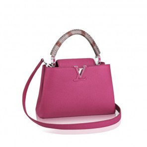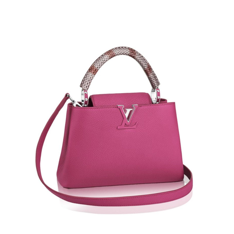 The fashionable mini size of Capucines BB lends an intense pop of contrasting colors to wardrobe styles from classic to daring. The Capucines BB comes with a removable long shoulder strap for casual shoulder or cross-body wear.
