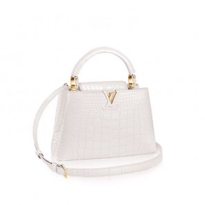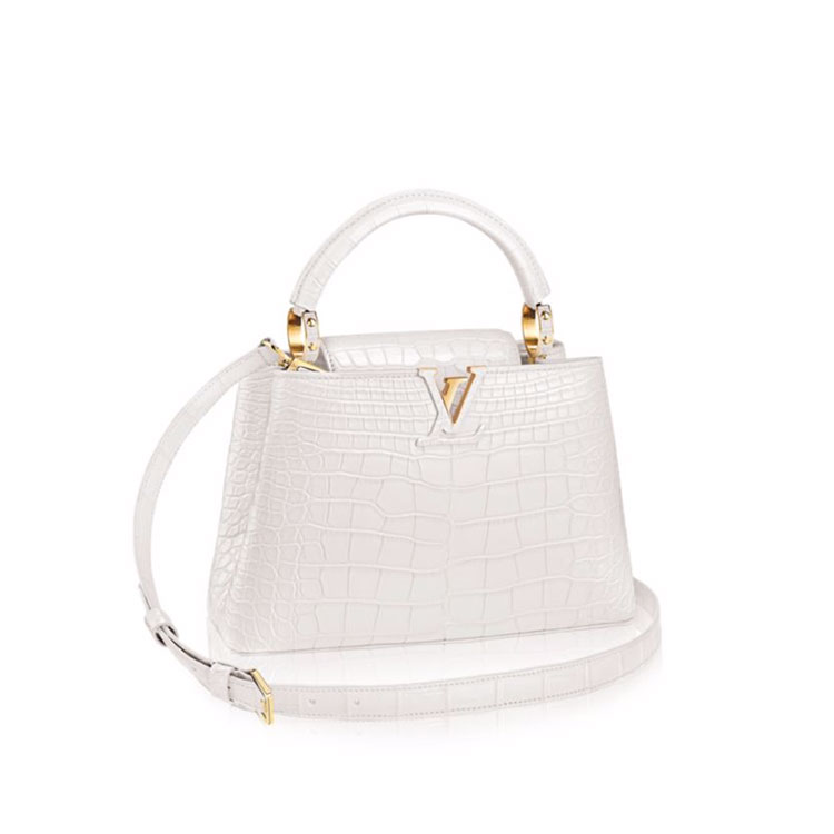 In pure matte white crocodilian leather, this Capucines BB gives off a luminous and refined feel that will brighten up any look. A perfect day-to-evening bag, its feminine shape and subtle signatures incarnate a discreet yet sophisticated vision of luxury.