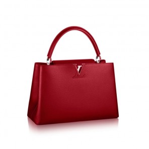Taking its name from the rue des Capucines in Paris, where Louis Vuitton opened his first store in 1854, the timelessly elegant Capucines bag is a testament to fine leather craftsmanship. In full-grain Taurillon leather, it combines refined details, including a semi-rigid handle secured by jewel-like rings, with a spacious, functional shape offering two inside compartments. Its distinctive flap can be worn in two ways: outside to reveal the outline of a Monogram flower, or inside to show the LV initials.