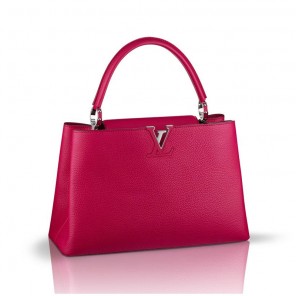 Taking its name from the Rue des Capucines in Paris, where Louis Vuitton opened his first store in 1854, the timelessly elegant Capucines bag is a testament to fine leather craftsmanship. In full-grain Taurillon leather, it combines refined details, including a semi-rigid handle secured by jewel-like rings, with a spacious and functional shape offering two inside compartments. Its distinctive flap can be worn two ways: outside to reveal the outline of a Monogram flower, or inside to show the LV initials.