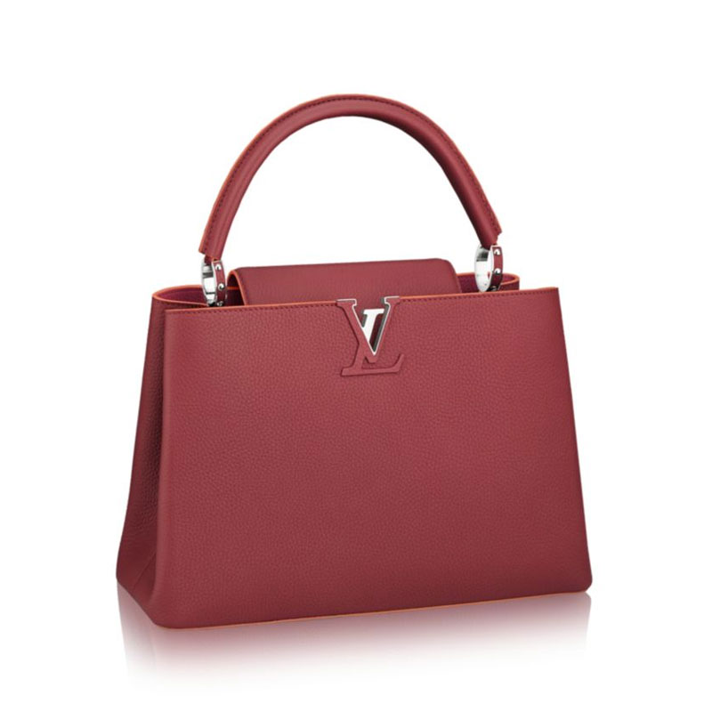 Taking its name from the Rue des Capucines in Paris, where Louis Vuitton opened his first store in 1854, the timelessly elegant Capucines bag is a testament to fine leather craftsmanship. In full-grain Taurillon leather, it combines refined details, including a semi-rigid handle secured by jewel-like rings, with a spacious and functional shape offering two inside compartments. Its distinctive flap can be worn two ways: outside to reveal the outline of a Monogram flower, or inside to show the LV initials.