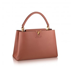 Taking its name from the Rue des Capucines in Paris, where Louis Vuitton opened his first store in 1854, the timelessly elegant Capucines bag is a testament to fine leather craftsmanship. In full-grain Taurillon leather, it combines refined details, including a semi-rigid handle secured by jewel-like rings, with a spacious and functional shape offering two inside compartments. Its distinctive flap can be worn two ways: outside to reveal the outline of a Monogram flower, or inside to show the LV initials.