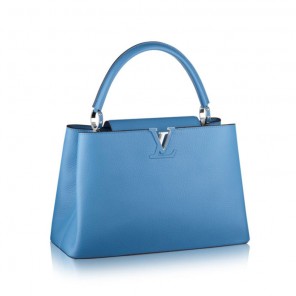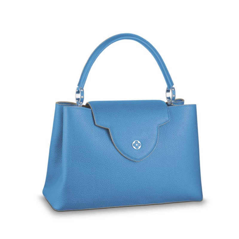 Taking its name from the Rue des Capucines in Paris, where Louis Vuitton opened his first store in 1854, the timelessly elegant Capucines bag is a testament to fine leather craftsmanship. In full-grain Taurillon leather, it combines refined details, including a semi-rigid handle secured by jewel-like rings, with a spacious and functional shape offering two inside compartments. Its distinctive flap can be worn two ways: outside to reveal the outline of a Monogram flower, or inside to show the LV initials.