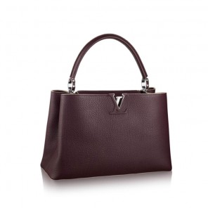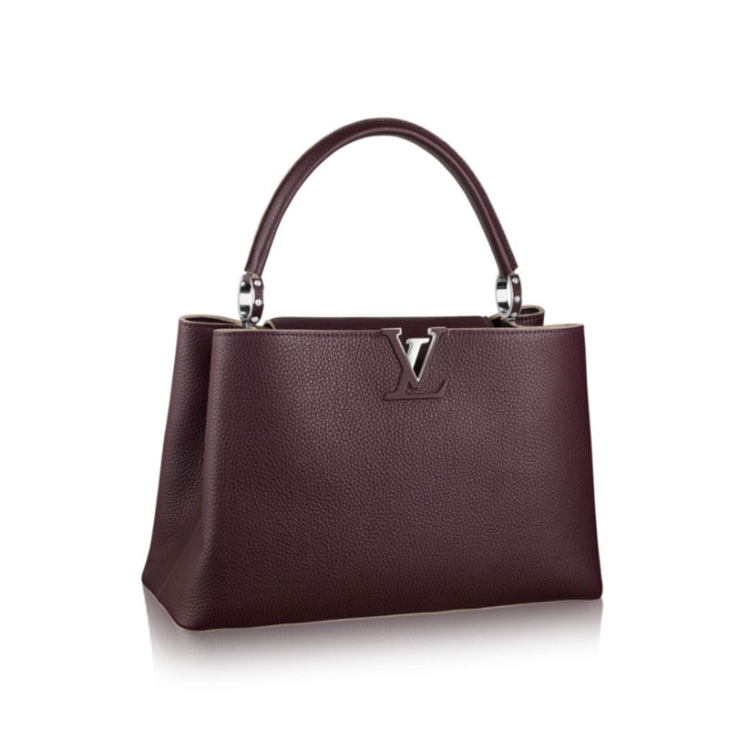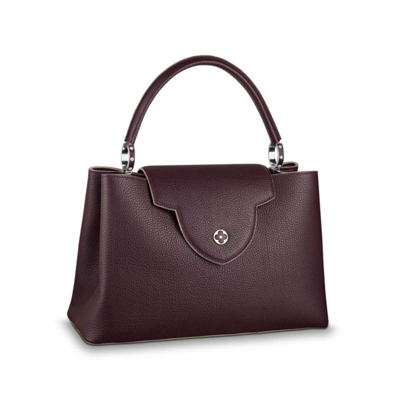 Taking its name from the Rue des Capucines in Paris, where Louis Vuitton opened his first store in 1854, the timelessly elegant Capucines bag is a testament to fine leather craftsmanship. In full-grain Taurillon leather, it combines refined details, including a semi-rigid handle secured by jewel-like rings, with a spacious and functional shape offering two inside compartments. Its distinctive flap can be worn two ways: outside to reveal the outline of a Monogram flower, or inside to show the LV initials.