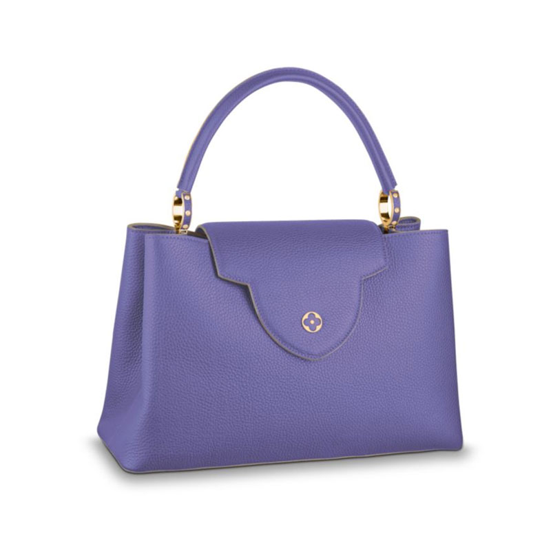 Taking its name from the Rue des Capucines in Paris, where Louis Vuitton opened his first store in 1854, the timelessly elegant Capucines bag is a testament to fine leather craftsmanship. In full-grain Taurillon leather, it combines refined details, including a semi-rigid handle secured by jewel-like rings, with a spacious and functional shape offering two inside compartments. Its distinctive flap can be worn two ways: outside to reveal the outline of a Monogram flower, or inside to show the LV initials.