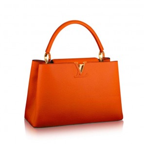 Taking its name from the Rue des Capucines in Paris, where Louis Vuitton opened his first store in 1854, the timelessly elegant Capucines bag is a testament to fine leather craftsmanship. In full-grain Taurillon leather, it combines refined details, including a semi-rigid handle secured by jewel-like rings, with a spacious and functional shape offering two inside compartments. Its distinctive flap can be worn two ways: outside to reveal the outline of a Monogram flower, or inside to show the LV initials.