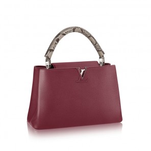 It was on the Rue des Capucines in Paris that the first Louis Vuitton store opened its doors. As timeless as the House itself, the Capucines bag brings chic sophistication to any look. Full-grain Taurillon leather combines with precious python to create a luxurious handbag accented with heritage details: the LV initials, the distinctive side rings and the subtle Monogram flower on the closing flap. Its capacious interior makes the bag an ideal companion for a day of business or shopping.
