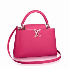 The fashionable mini size of Capucines PM lends an intense pop of contrasting colors to wardrobe styles from classic to daring. Finished with shiny color accents, the Capucines PM comes with a removable shoulder strap for casual shoulder or cross-body wear.