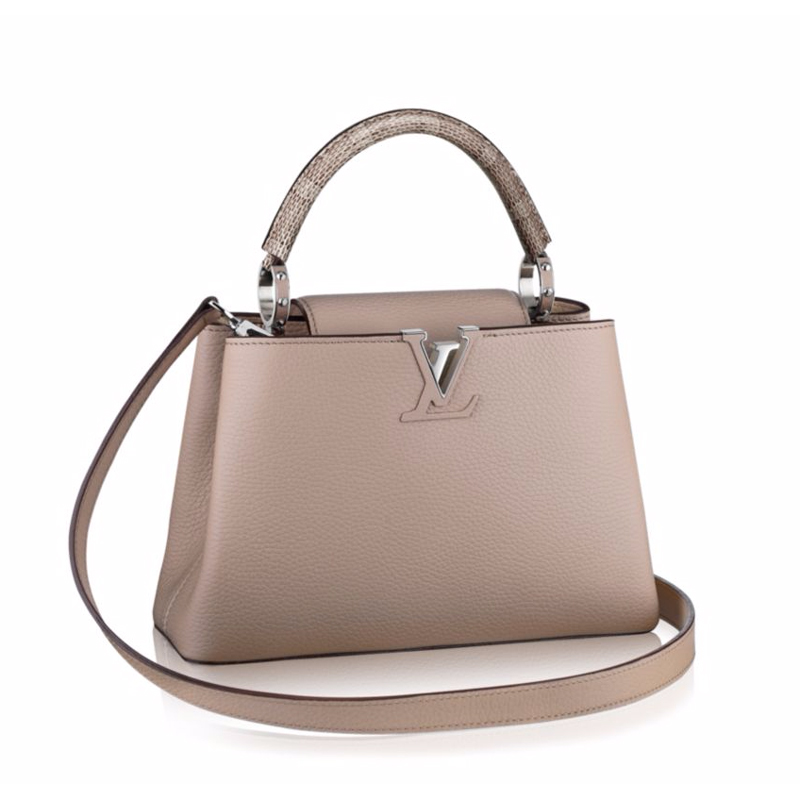 The fashionable mini size of Capucines PM lends an intense pop of contrasting colors to wardrobe styles from classic to daring. Finished with shiny color accents, the Capucines PM comes with a removable shoulder strap for casual shoulder or cross-body wear.