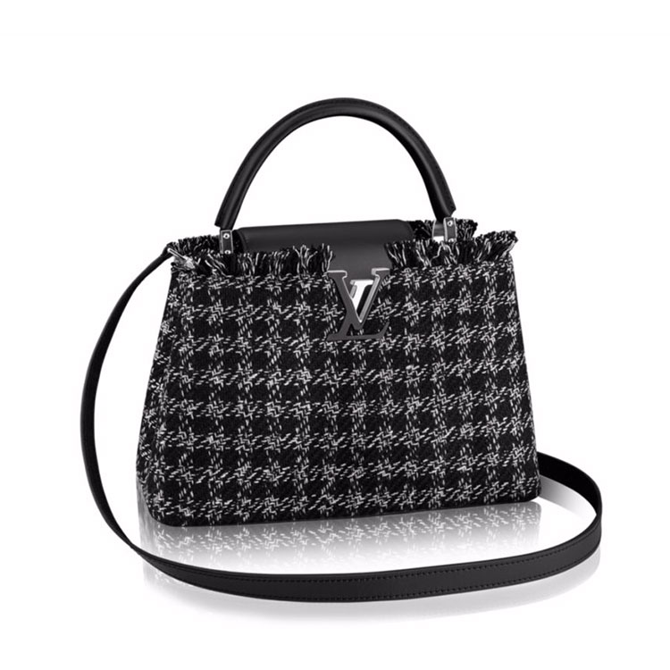 The Capucines Checkers model plays a fashionable game, dressed in black and white tartan tweed, a fabric borrowed from the F/W 17 runway. The feminine fringe detail highlights the bag鈥檚 distinctive handle and flap. It鈥檚 an elegant choice for winter.