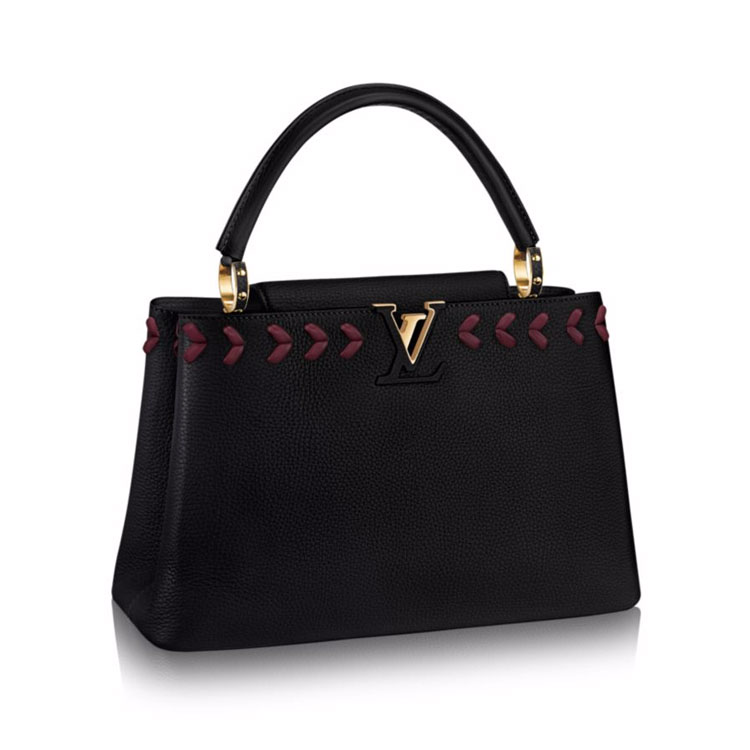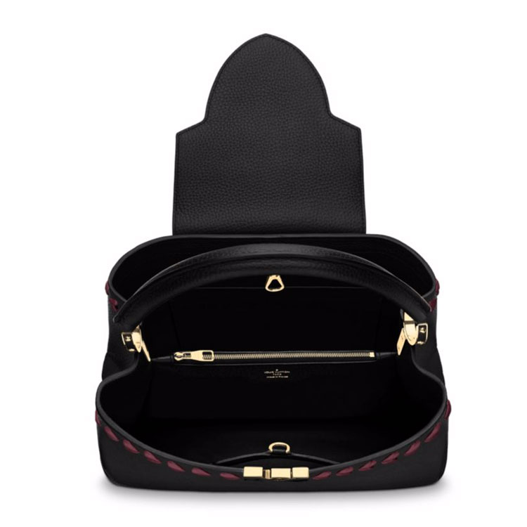 The lambskin braids woven into the top of this Capucines PM, together with the contrasting Taurillon leather, bring a delicate twist to this iconic handbag.