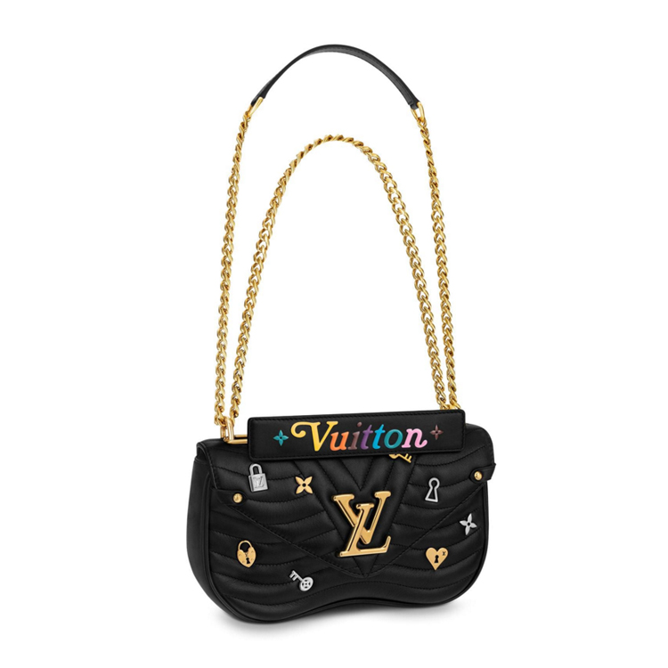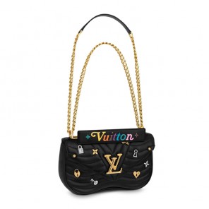 The New Wave Chain Bag MM handbag is crafted from smooth quilted calfskin, accessorized with a scattering of LV Love Locks for Spring 2019. The Love Locks evoke Paris鈥檚 Pont des Arts where lovers come to attest to their love by attaching locks to the bridge. Each design is a tribute to the House鈥檚 Heritage and twists Louis Vuitton鈥檚 most emblematic symbols: the Monogram Flower and the key and lock.