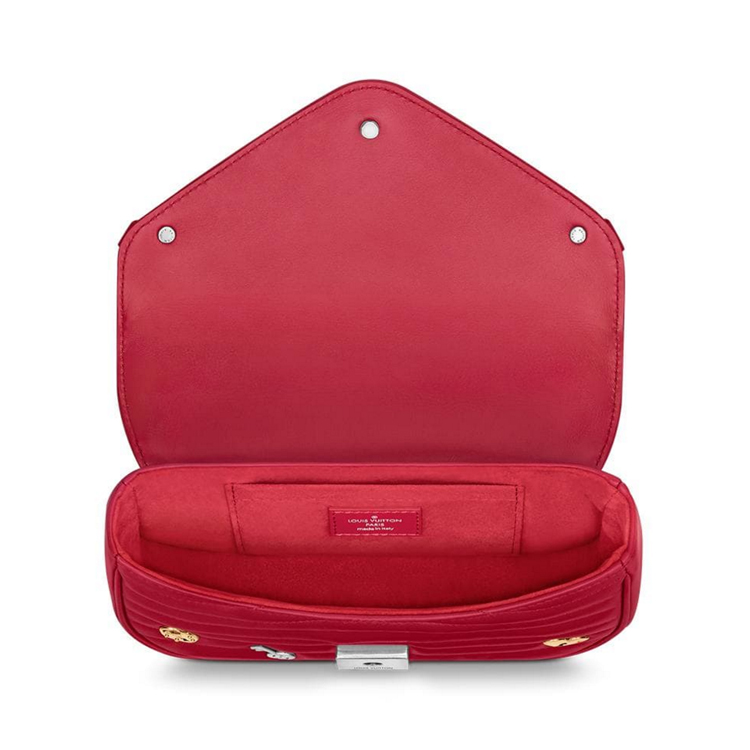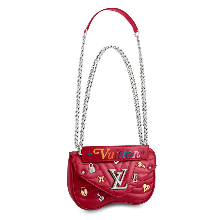 For Spring 2019, Louis Vuitton brings its LV Love Lock Story to the New Wave Chain Bag PM handbag. The bag’s smooth quilted calfskin is embellished with a series of House symbols such as the padlock with its key and the Monogram Flower pattern. The bag features a removable handle, signed with the new multicolor “Vuitton”, as well as a sliding chain for shoulder and cross-body wear.