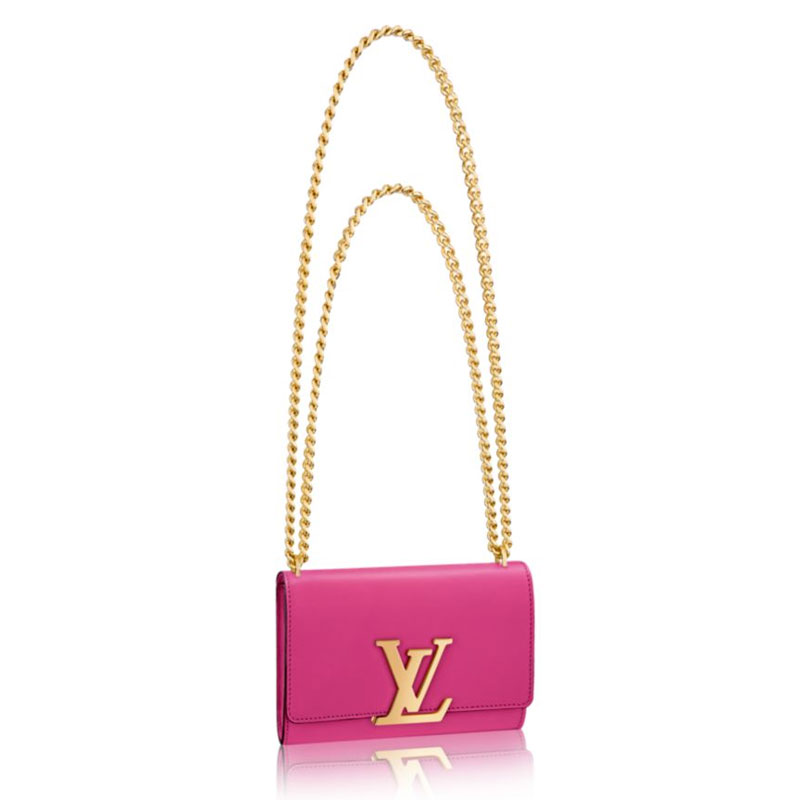 With its sleek lines and bold signature clasp, here is a glamorous bag to have and to hold, through party season and beyond. Accented with an adjustable gourmette chain, this new iteration of the Louise clutch moves fashionably from cocktails to formal soirees, worn cross-body, over the shoulder or carried by hand. Offered in alluring shades, with contrast edge dyeing for a refined finishing touch.