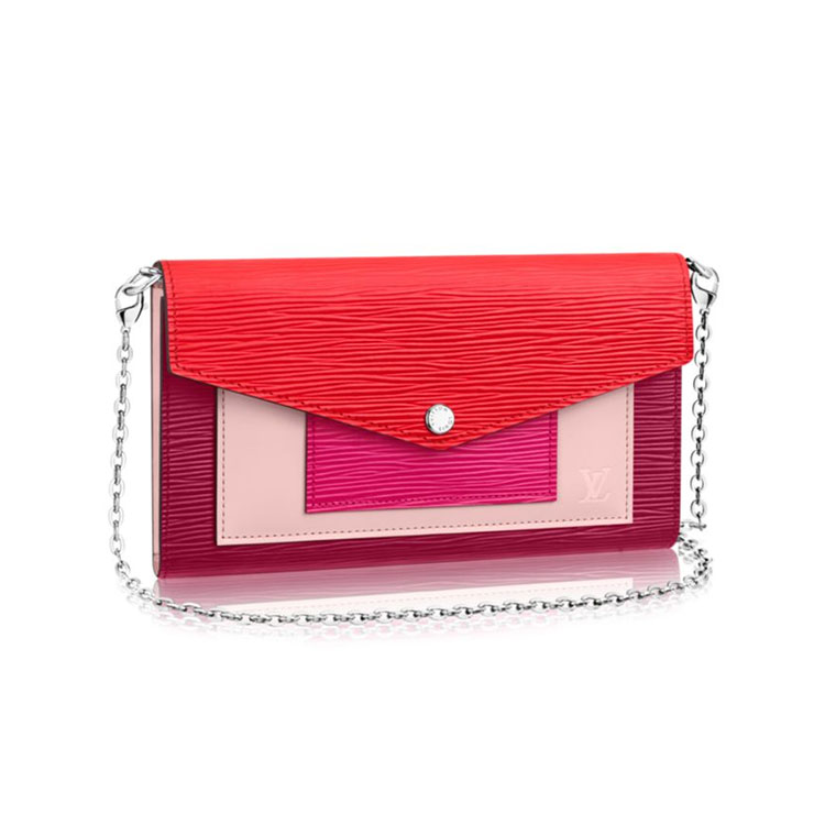 Graphic and colorful, this Chain Wallet in Epi leather with its layered pockets is the very incarnation of a fresh and trendy style. The many pockets and slots in the well-designed interior mean it easily carries your essentials.