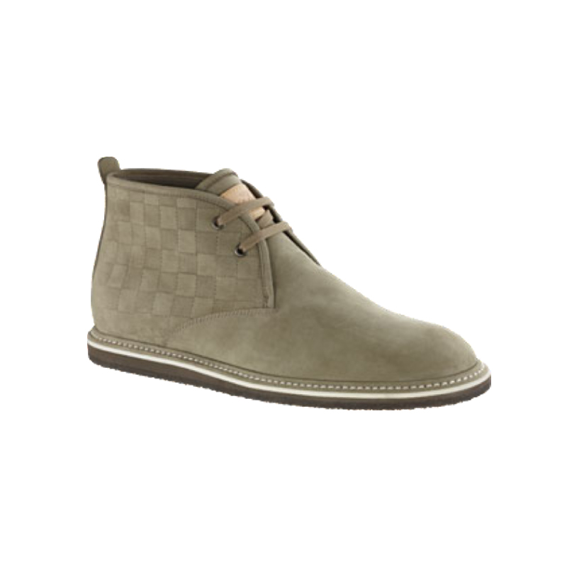 This revisited desert boot is right on trend for summer. In velvety suede calf leather, the shoe is partially embossed with Louis Vuitton's iconic Damier pattern.