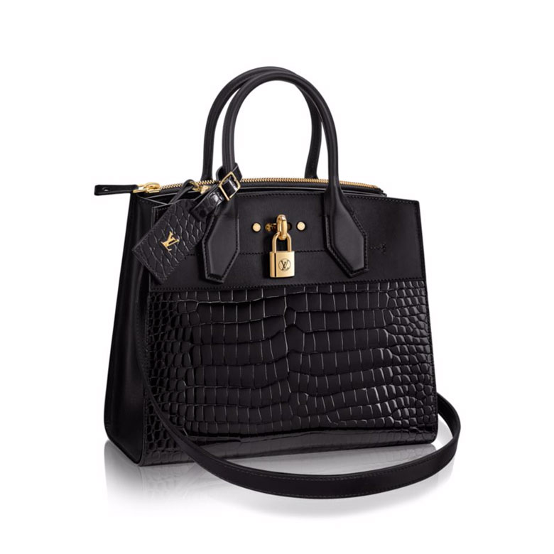 Steamer luggage crafted by Louis Vuitton for cruise-ship passengers at the turn of the last century inspired this stylish, refined city bag. A unique pairing of luxe crocodile skin and smooth calf, it can be carried in multiple ways as day eases into evening.