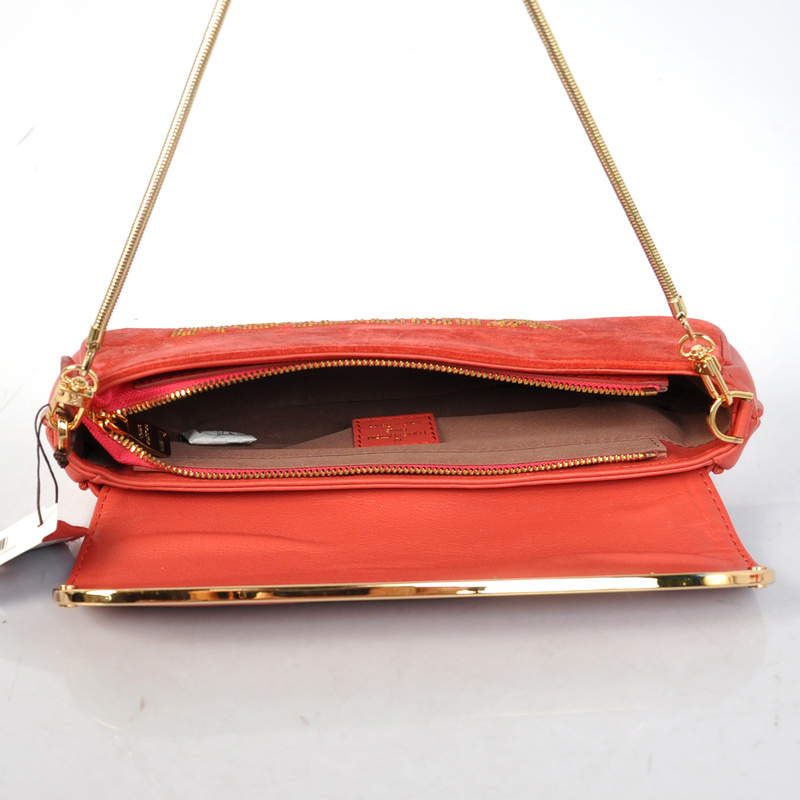 Embrace bold Art Deco chic with the Clutch Avant-Garde. Dazzling crystals complement shiny goatskin and the natural hues of the velvety soft suede, while golden metallic details add a vintage touch.