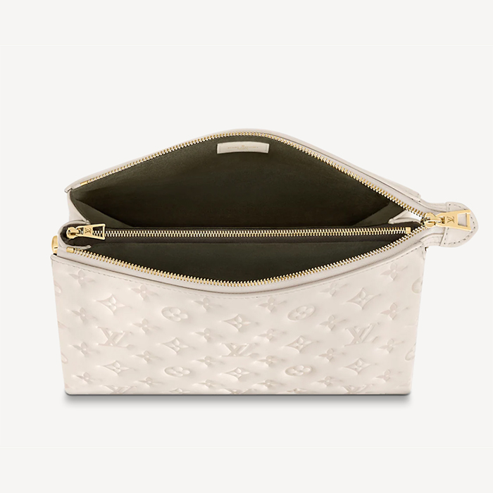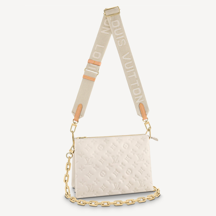 One of the stars of the Spring-Summer 2021 show, the Coussin PM handbag is made from Monogram-embossed puffy lambskin. It can be worn cross-body with the strap, as a chain baguette, or comfortably carried under the arm. The pillow-like Coussin bag brings style to the most simple look, giving it an effortless fashion-forward allure.