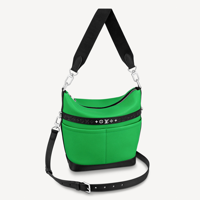 The Cruiser GM bag turned heads at the Spring-Summer 2021 show. Made from calfskin leather, this versatile bag features a removable and adjustable leather strap and a textile top handle. It can be carried by hand or worn cross-body, and once unfolded, it becomes a spacious bucket bag to be worn on the shoulder.