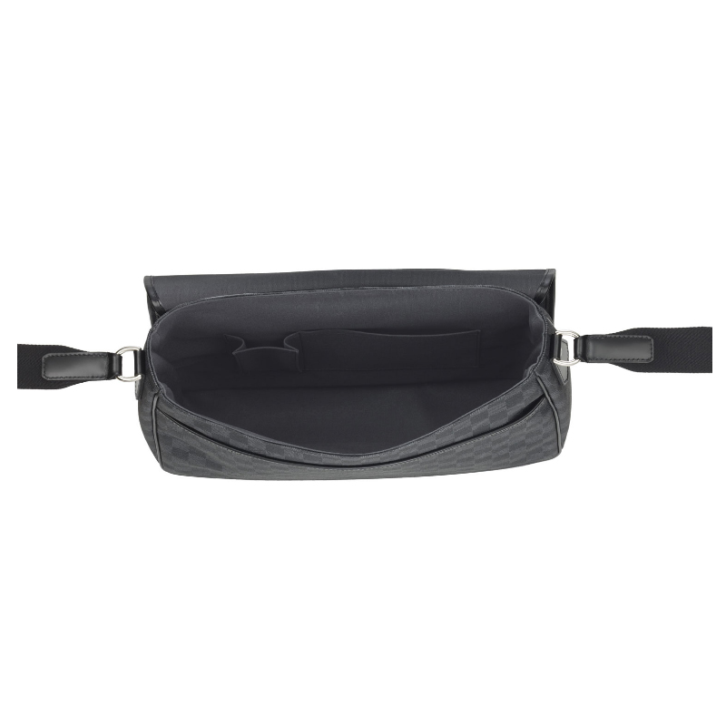 Fashioned in resistant Damier Graphite canvas with leather trim, this city bag combines executive chic with attitude.