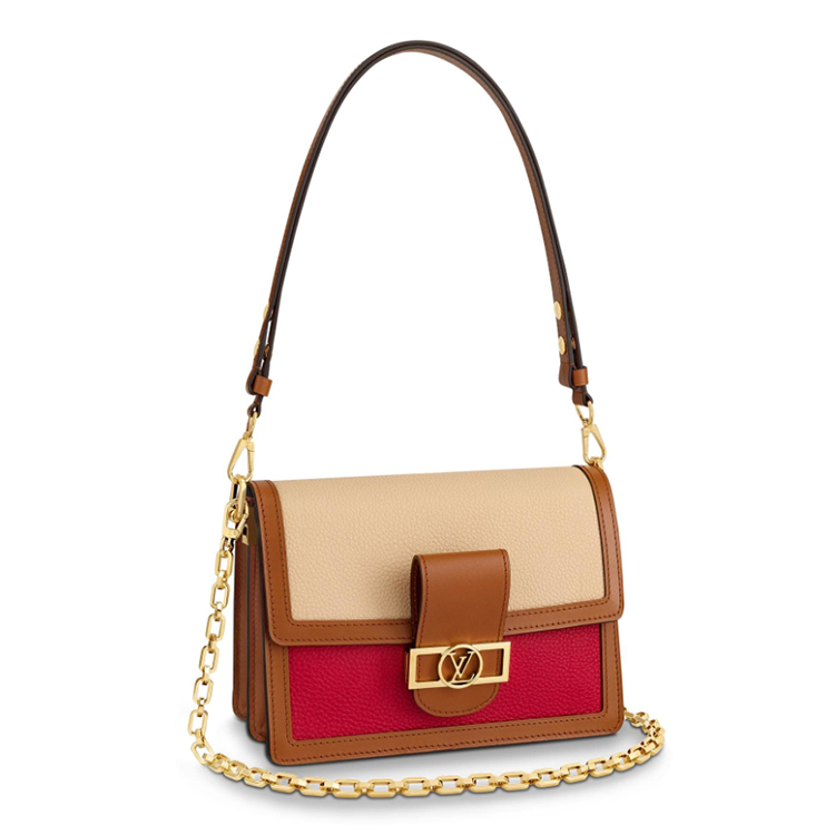 The Dauphine MM handbag steps out for Spring-Summer 2019 in this refined bicolor version. Crafted from full-grain Taurillon leather trimmed in smooth calfskin, it is fitted with a golden LV lock and hexagonal-link chain as well as a detachable and adjustable leather strap, for a full range of chic carry styles.