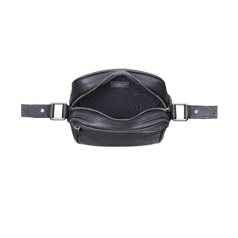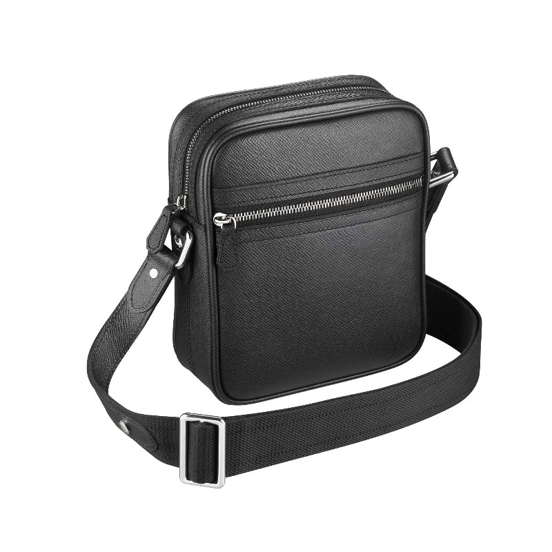 This male, city bag easily holds a cell phone, wallet and small change. It features two external pockets; one zippered, and comes with a practical, adjustable strap.