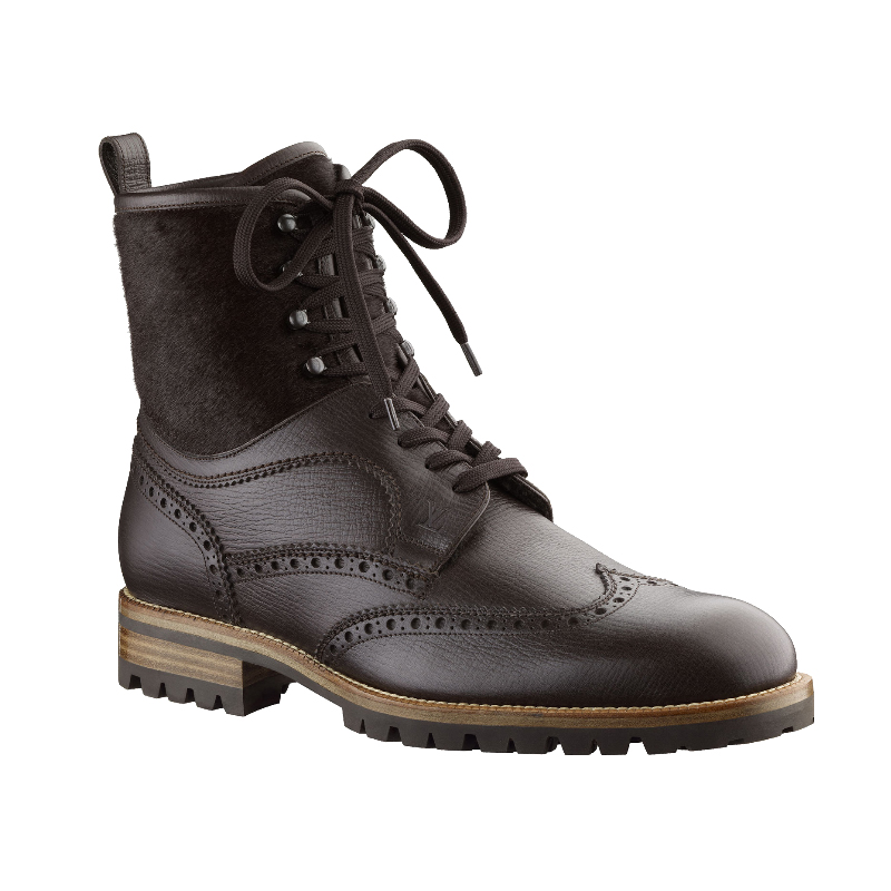 This modern brogue-style ankle boot makes a strong statement for winter with its outdoor-inspired outsole, sporty laces and daring combination of Utah leather and poney-styled calf leather.