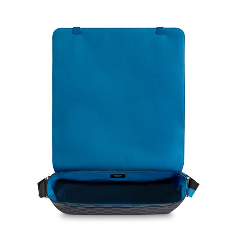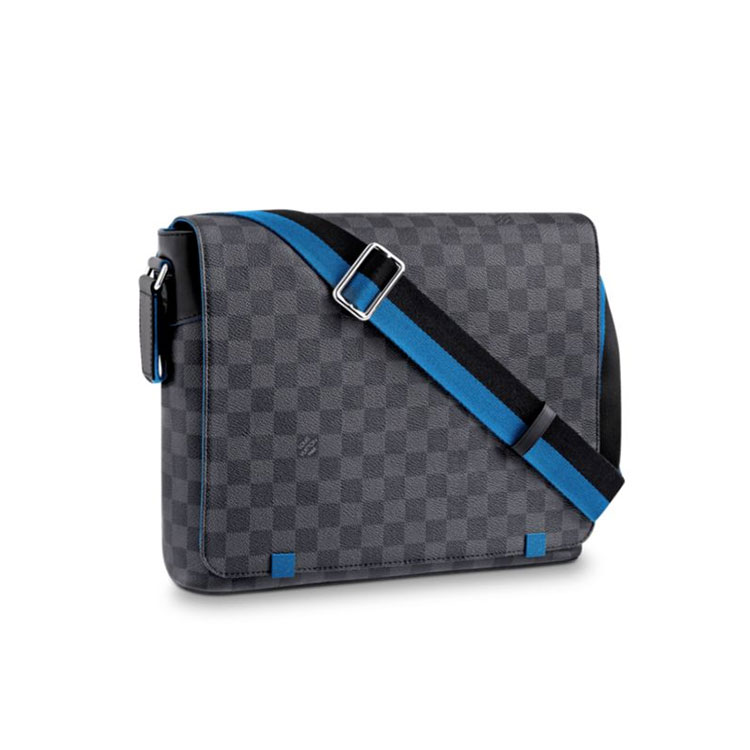 This stylish and easy-to-wear messenger bag in Damier Graphite canvas edges toward sportswear thanks to its colored metallic parts and a bi-color textile strap. The District MM the perfect antidote to everyday life.
