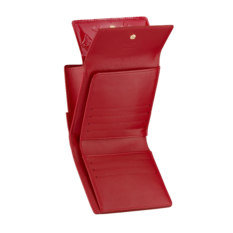 This wallet in Monogram Vernis leather is both compact and practical. It features four credit card slots and holds bills, change and receipts.