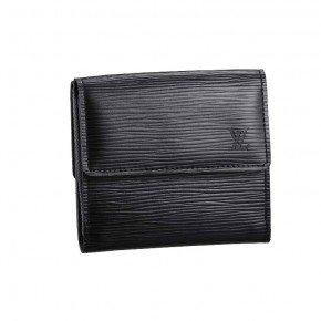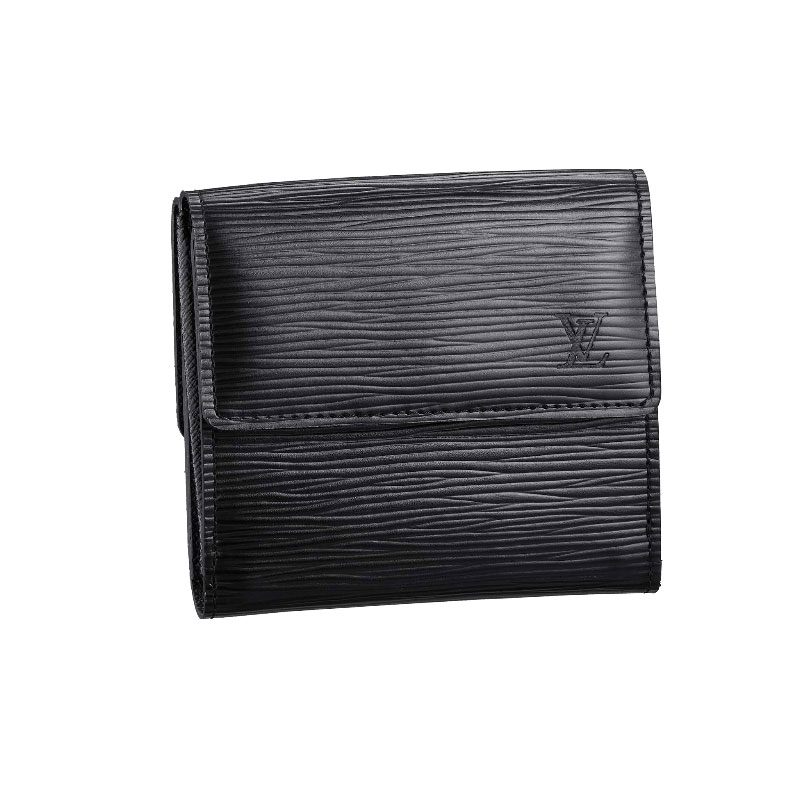 This billfold in Epi leather offers two uses in one. On one side, it holds change in a snapped pocket; on the other, it features a wallet.