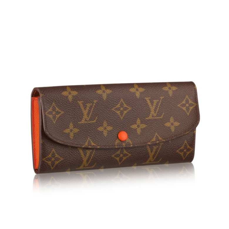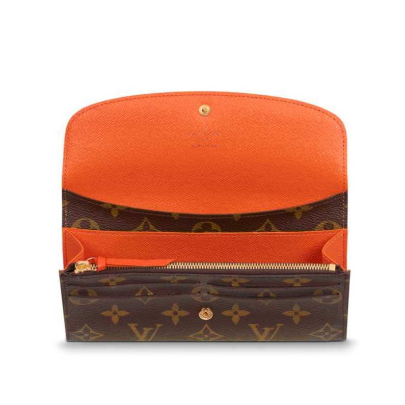 Proving that functionality and beautiful design can go together, the Emilie Wallet is elegance itself in supple Monogram canvas with a fresh lining color. Numerous pockets and an attractive shape make it irresistible.