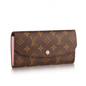 Proving that functionality and beautiful design can go together, the Emilie Wallet is elegance itself in supple Monogram canvas with a fresh lining color. Numerous pockets and an attractive shape make it irresistible.