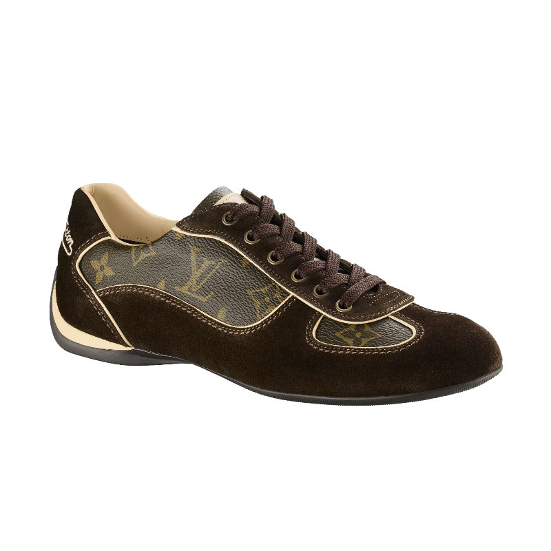 Iconic Monogram canvas and velvety suede are a winning combination on this streamlined sneaker, which sports an embroidered Louis Vuitton signature at the back.