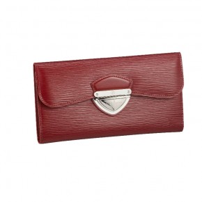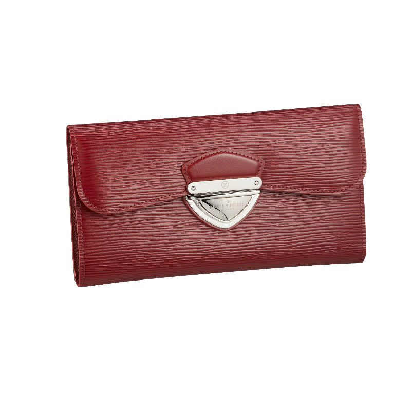 Inspired from the Beverly city bags family, the Eug茅nie wallet in Epi leather has a very feminine look with folded edges and a brushed silvery brass closure with the Louis Vuitton signature.
