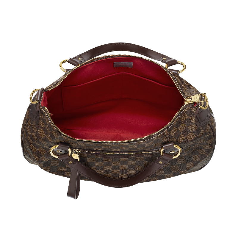 Celebrate exceptional detailing with the Evora MM. In supple Damier Ebene canvas, feminine pleats, sumptuous leather trimmings and rich golden brass pieces all add to its sophisticated look.
