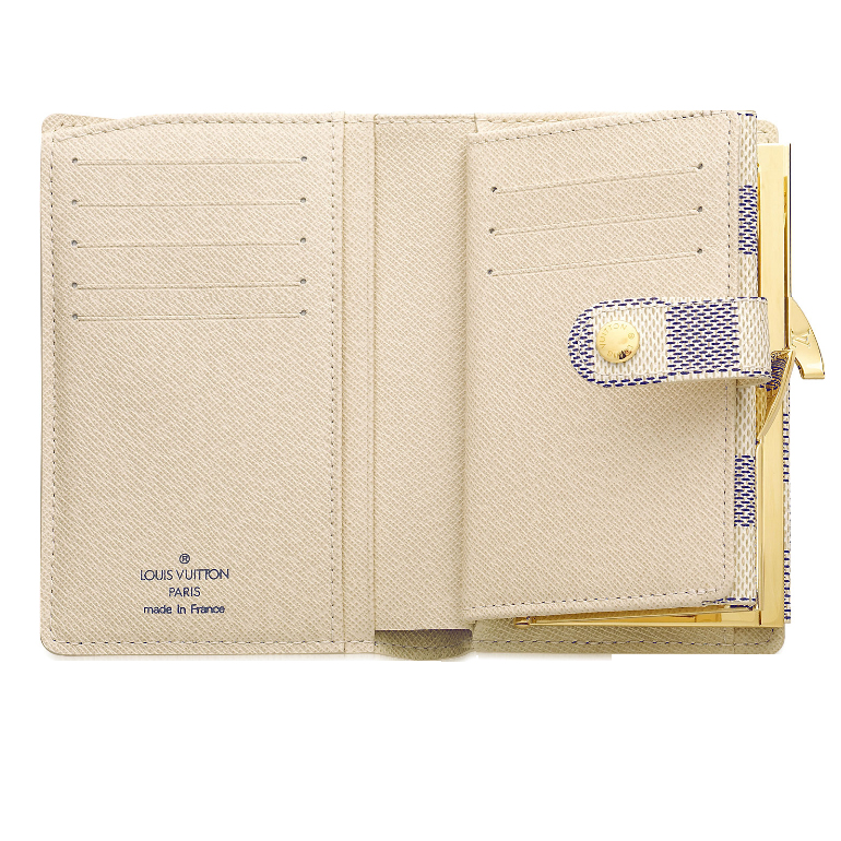 This elegant yet practical Damier Azur canvas wallet features several compartments and slots, and a snap and press stud closure.