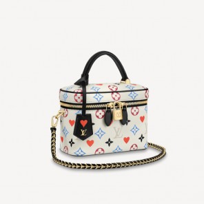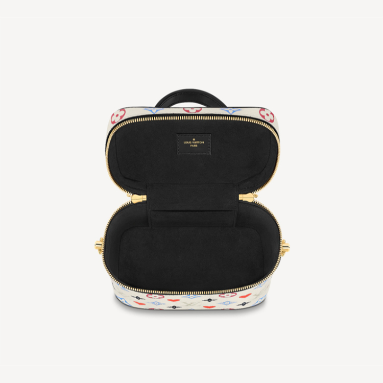 The Vanity PM city bag is fashioned from new Game On Monogram canvas. The bag takes on a striking aspect in a Game On pattern transformed by Nicolas Ghesqui猫re, rendered with colored Monogram Flowers in bright blue and red. Compact and supple, it can be carried by hand, on the shoulder, or cross-body.