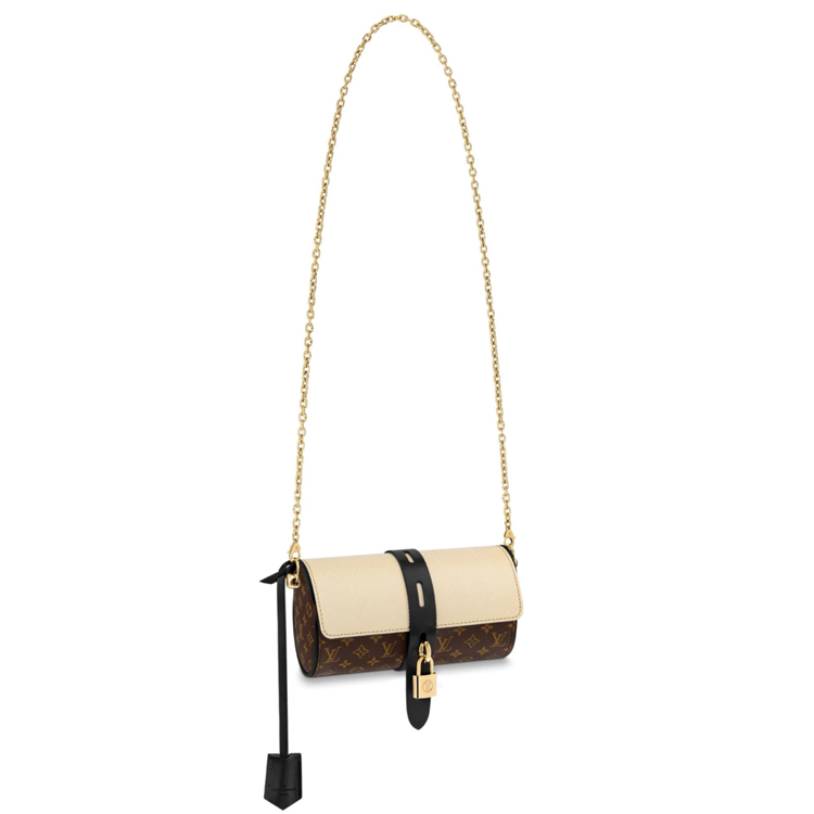 For Fall-Winter 2018 Show Nicolas Ghesqui猫re introduces a new nomade-shape: the Glasses Case handbag with the familiar Monogram print and a striking padlock closure. A mix of luxury materials, such as Epi leather and Monogram coated canvas, gives a luxurious feel. This bag is ideal for carrying essentials and can be worn across the body or on the shoulder thanks to the adjustable chain strap.