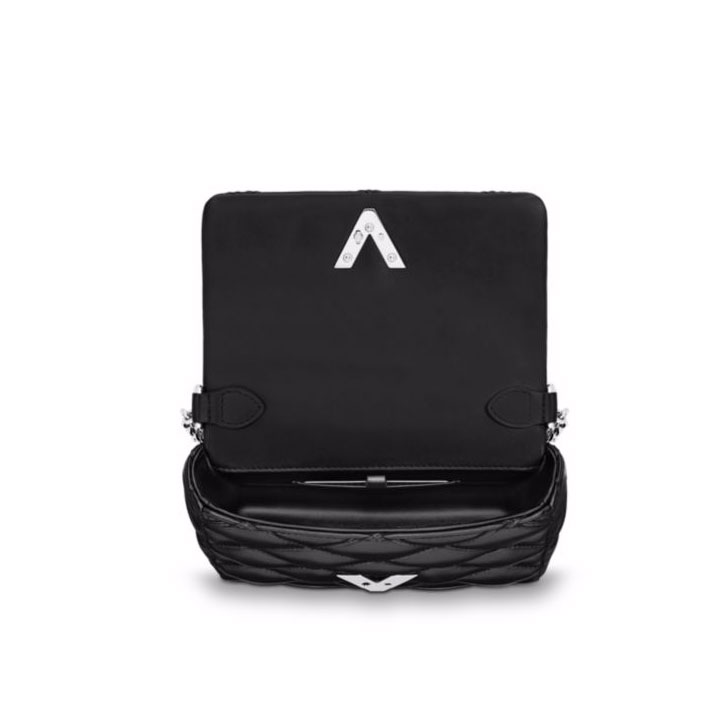 Inspired by the crisscross lining of classic Vuitton trunks, the pattern is rendered here in soft embossed lambskin with distinctive ribbon embroidery. The signature sliding chain and the LV Lock add a sophisticated touch to this versatile, body-friendly bag.