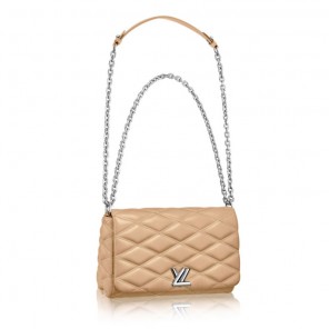 Inspired by the crisscross lining of classic Vuitton trunks, the pattern is rendered here in soft embossed lambskin. New, too, is the diminutive LV lock, a gleaming jewel in Palladium brass. The S/S15 signature sliding chain adds a sophisticated touch to this versatile, body-friendly bag.