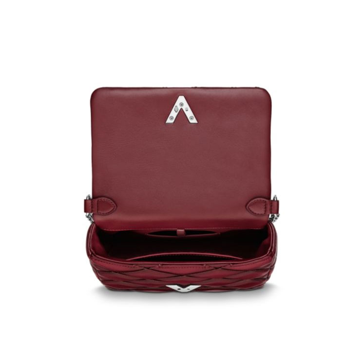 Inspired by the crisscross lining of classic Vuitton trunks, the Malletage pattern is rendered here in soft embossed lambskin with distinctive ribbon embroidery. New, too, is the LV lock in a smaller version, a gleaming jewel in silver metallic pieces. The S/S 15 signature sliding chain adds a sophisticated touch to this versatile, body-friendly bag.