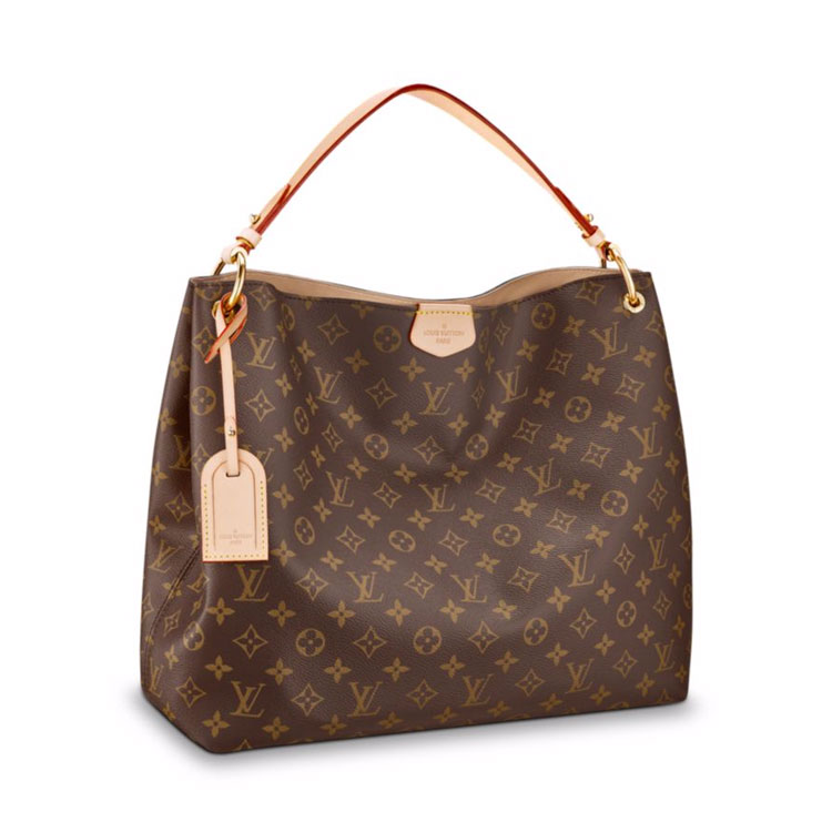 The spacious Graceful hobo has a lightweight, body-friendly design that makes it perfect for every day. The flat handle sits easily on the shoulder, while emblematic details, such as the leather name tag, reference Louis Vuitton's travel heritage.