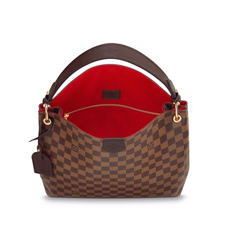 The spacious Graceful hobo has a lightweight, body-friendly design that makes it perfect for every day. The flat handle sits easily on the shoulder, while emblematic details, such as the leather name tag, reference Louis Vuitton's travel heritage.