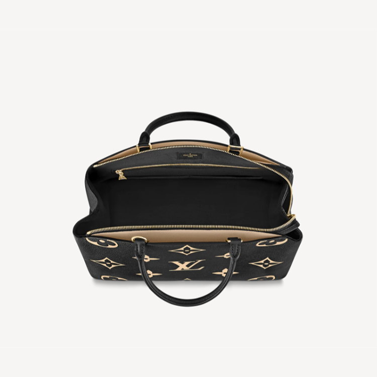 Both chic and impeccably functional, the Grand Palais tote bag is made from soft-grained leather, embossed with an oversized Monogram pattern. Its name tag and gold-color padlock evoke the House travel heritage. An ideal day-to-business bag, its well-organized interior includes multiple pockets and compartments. It offers several carries: hand, elbow and cross-body thanks to its ajustable and removable strap.
