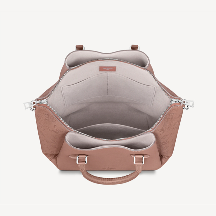 For Fall 2020, the contrasted perforation is offered on the Haum茅a bag in a delicate pink and brume grey colorway.The leather braided top handles not only allow comfortable and elbow carry but with the twin leather tassels bring additional style. An adjustable and removable strap ensures comfortable shoulder- and cross-body carry.